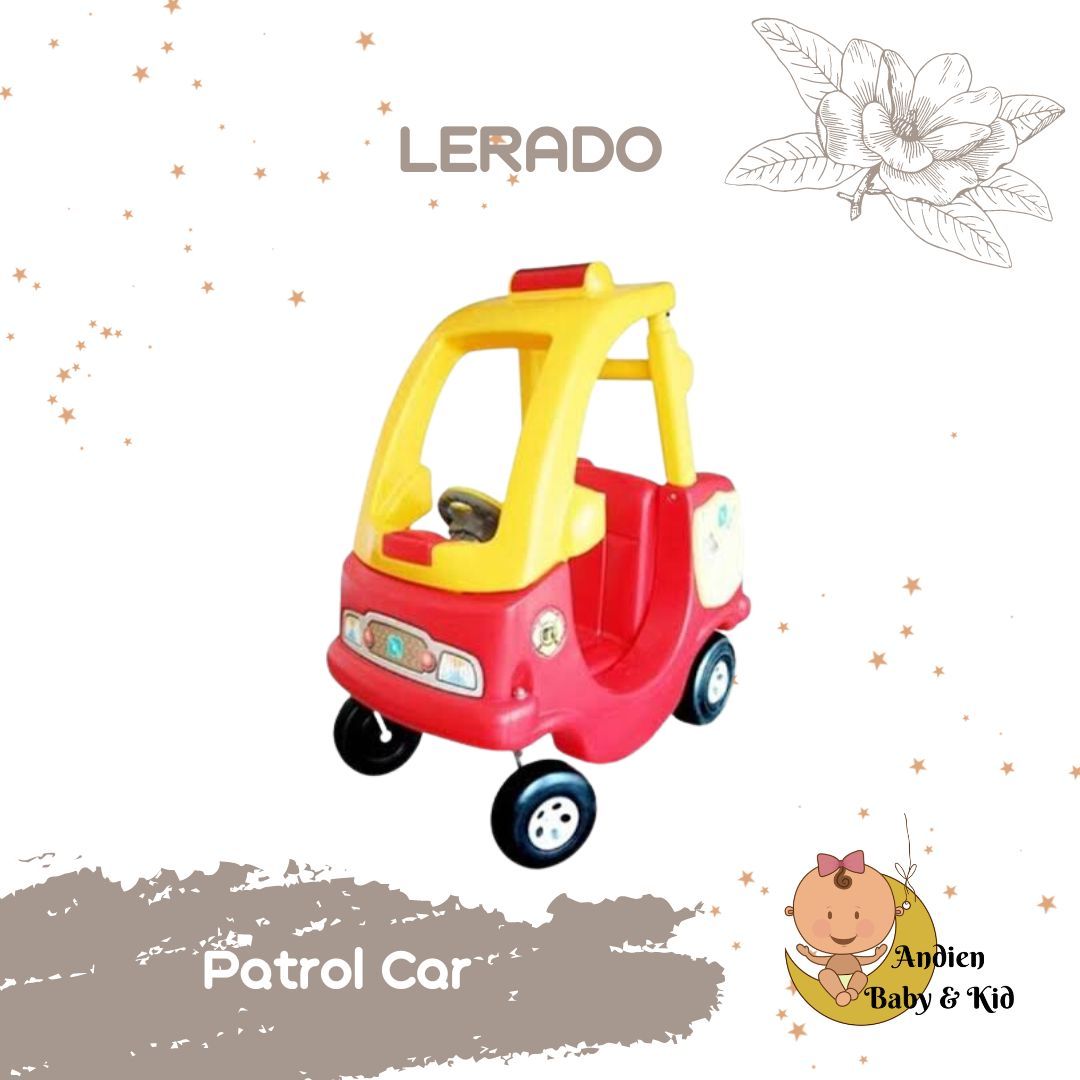 Lerado Patrol Car mainan ride on menyenangkan, dimensi mobil yang lebih besar dan dapat dimainkan oleh dua anak sekaligus. Tersedia kursi penumpang dibelakang untuk melengkapi bermain berpura pura lebih menyenangkan mendukung daya imajinasi anak Anda. Kunci kontak meng-klik, klakson yang dapat berbunyi bila ditekan. Material plastic tebal dapat digunakan didalam maupun diluar ruangan.